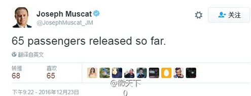 【马耳他总理:已释放65人】马耳他总理穆斯卡特刚刚在推特上表示,已有65人被释放。