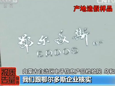 内蒙古自治区质监局产品监督处 艾继青:网上销售的标称的这些知名品牌并不是货真价实的,还是有很多瑕疵的。鄂尔多斯是我们羊绒衫(生产)聚集区,它也是一个品牌。在我们抽取的过程中将近达到20个电商都在售卖鄂尔多斯羊绒衫,我们在后期的追溯过程中发现实际的产地和溯源地都不是在鄂尔多斯,而在湖南、河北这些地方。