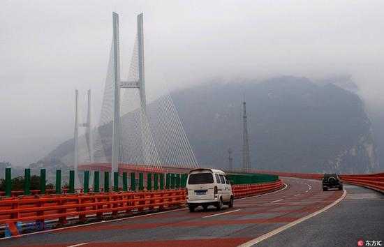12月29日,横跨贵州省六盘水市都格镇和云南省宣威市普立乡的北盘江大桥正式建成通车。大桥由云贵两省合作共建,全长1341.4米,桥面到谷底垂直高度565米,相当于200层楼高——这也是世界最高的大桥。