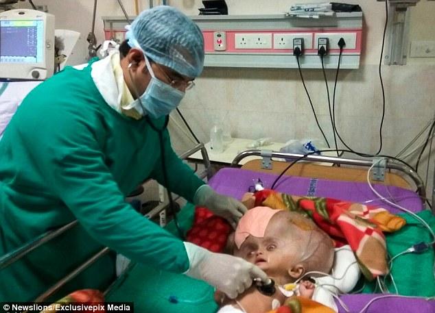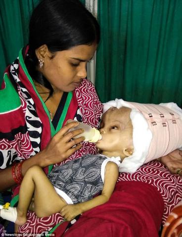 据英国《每日邮报》1月6日报道,印度一名生下来患有脑积水的7个月大婴儿,经过6个多星期的治疗,头部从当初西瓜般大小恢复到正常状态。医生共抽出了近4升脑脊液。