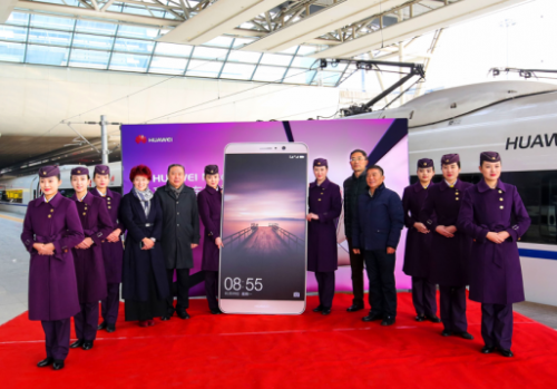 估计是为了庆祝这一大事件,华为在上海虹桥站举办了“HUAWEI Mate 9 号”高铁品牌专列首发仪式,宣告“HUAWEI Mate 9号”沪昆高铁品牌专利正式运行,车次1373。