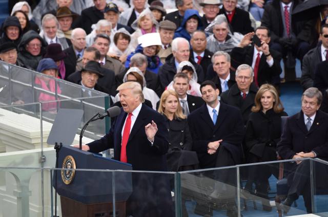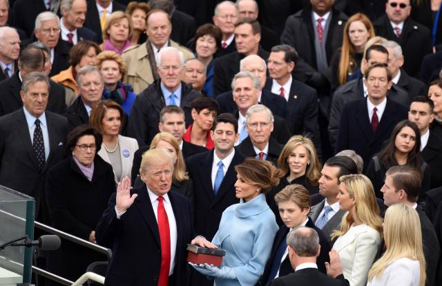 1月20日,美国当选总统、共和党人特朗普在美国首都华盛顿国会山举行的就职典礼上正式宣誓就任美国第45任总统。