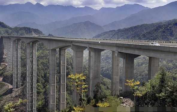下面这段桥就是雅安通往四川大桥浓雾散尽之后的模样,据说老司机路过这段桥梁的时候,没有一个人会打瞌睡,哪怕开了一夜的车,也会跟打了鸡血一样亢奋,风光太险峻,根本睡不着。