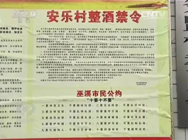 到2015年底,巫溪县298个村全部出台了关于禁止整无事酒的村规民约。