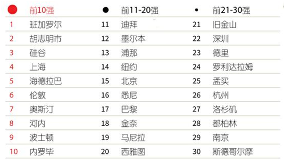 图\2017全球最具活力30大城市排行榜。来源:JLL