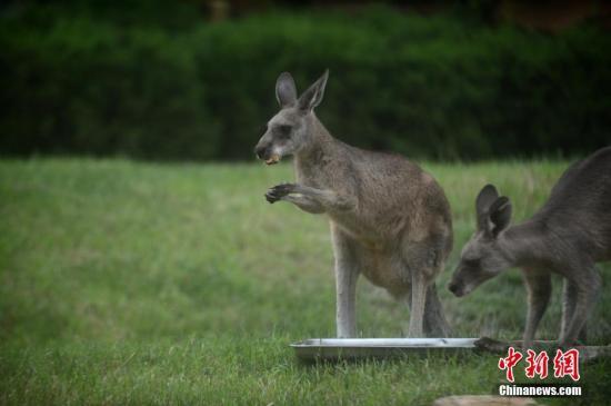 资料图:正在享用饲料的袋鼠。孟德龙 摄