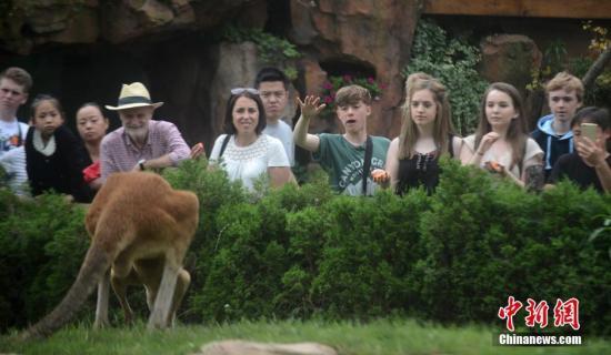 游客正观赏袋鼠。孟德龙 摄