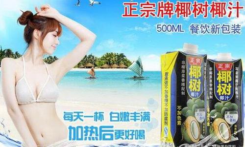 在椰树椰汁的户外广告图片上,女性代言人衣着暴露,露出丰满的胸部,配以广告语“椰树牌椰汁,每天一杯,白嫩丰满”;而另一则网络视频广告中,多位胸部丰满的年轻女性手捧椰树椰汁,说出广告语“曲线动人,白嫩丰满”。