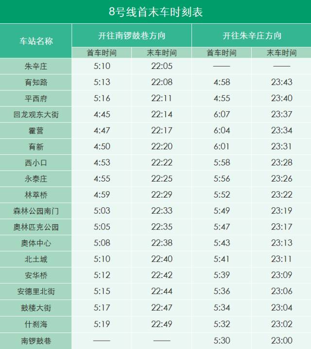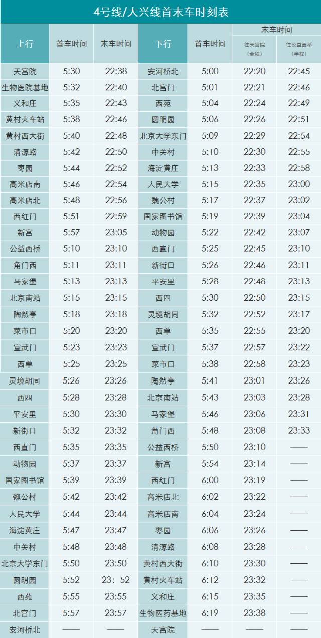 首班:【苏州街】6:19,22:32;【巴沟】4:54,22:31