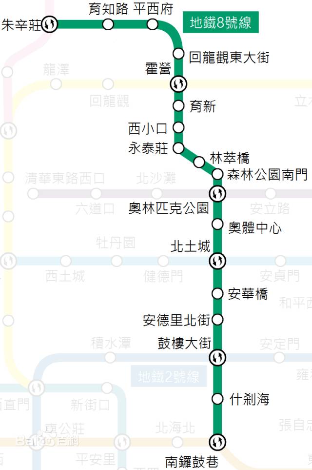 可换乘:地铁2号线,4号线,10号线,8号线,5号线,15号线以及昌平线