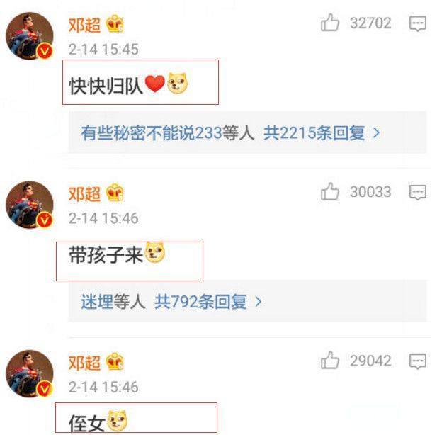 而大家长邓超也仅仅是在鹿晗微博下评论表示欢迎热巴,还在欢迎之前先去Baby微博期待了一番,其他人呢,齐刷刷保持沉默。