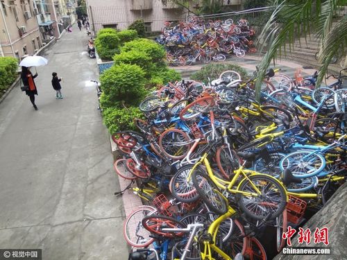 2017年1月16日,广东深圳南山区,深圳蛇口湾厦山公园出入口,出现大面积人为破坏的共享单车。图片来源:视觉中国