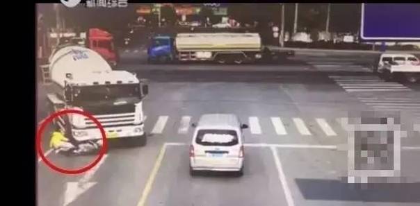 右转的搅拌车和直行的摩托车相撞,一家三口被卷入车下。