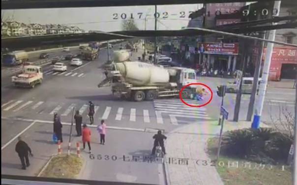 2月27日上午10点38分左右,浙江嘉兴市南湖区七星街道320国道与兴星路交叉口,一辆水泥搅拌车右转时,与非机动车道上一辆直行的二轮摩托车发生碰撞,摩托车上一对夫妻和一个2岁孩子被卷到车下。