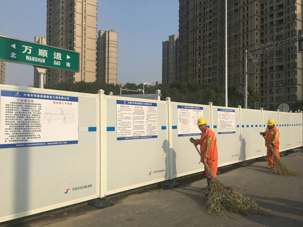 图为围挡现场,外观干净、整洁的市政围挡已经搭建