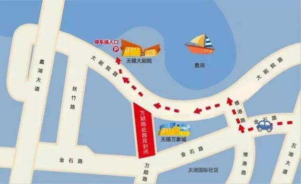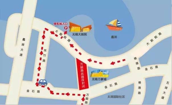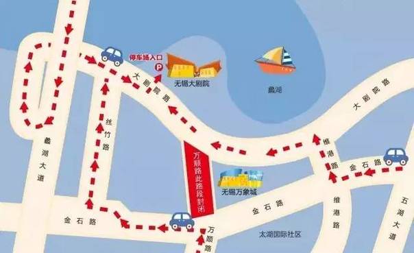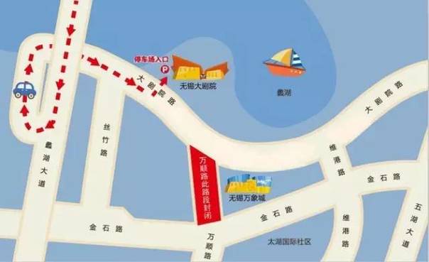 万顺道(大剧院路—金石路段)将封闭,禁止机动车通行,非机动车和行人可在围挡外侧宽约4米的临时便道内通行。过境机动车辆需按照交通标志的指示,从丝竹路、大剧院路、维港路等周边道路绕道行驶。