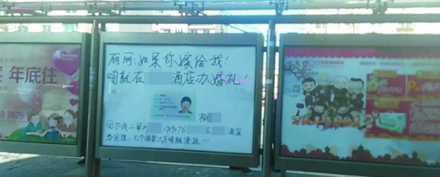 公交车站现“求婚广告”