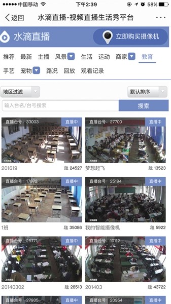 “不论你在干什么,都会有无数的眼睛注视着你”、“监狱已经诞生”。近日,“水滴直播”平台上,全国多地的不同学校教室内画面被直播,引发网友质疑。