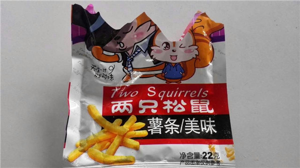吉林长春农安县华家镇附近,“两只松鼠”薯条,不知道三只松鼠会怎么看。
