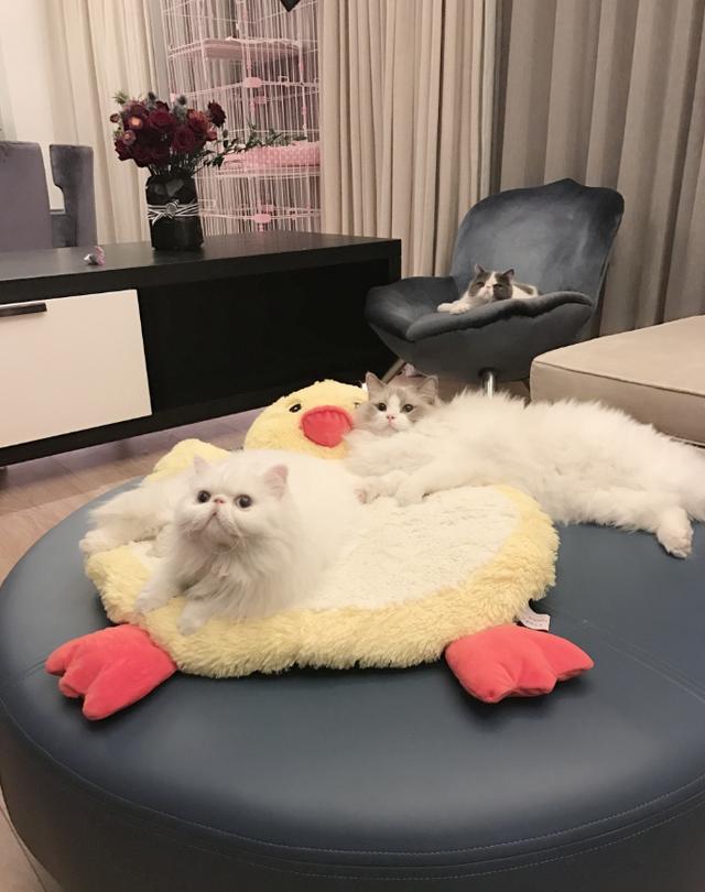范爷家里的猫咪足足有4、5只,不知道的人还以为走近宠物店了,范冰冰对爱宠也是疼爱的,只能说范冰冰养的猫咪真幸福,地板也是大理石的,范爷果然是豪门啊!