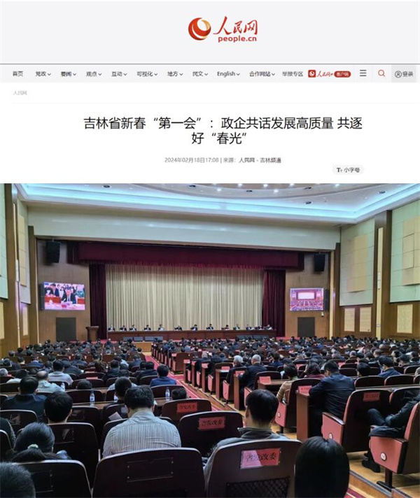 人民网刊发《吉林省新春“第一会”:政企共话发展高质量 共逐好“春光”》,报道“优化营商环境、抓项目、促投资”成为大家提及次数最多的几个“高频词”;站在新起点,吉林上下将解放思想、开放包容、放开搞活,下大气力打造一流营商环境,加快项目建设,建设“丰富多彩”美好吉林,为推动新时代吉林全面振兴率先实现新突破作出新的更大贡献。