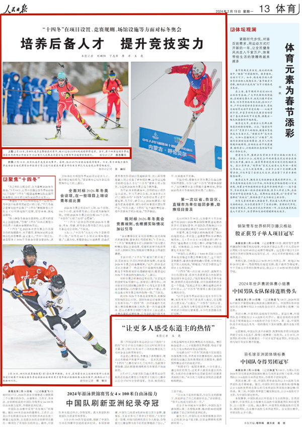 人民日报刊发《培养后备人才 提升竞技实力》,其中报道吉林队选手孟繁棋在冬季两项公开组女子15公里个人比赛中,以52分55秒8的成绩夺得冠军;孙龙在短道速滑赛场收获第四枚金牌后表示将全力备赛2026年冬奥会。