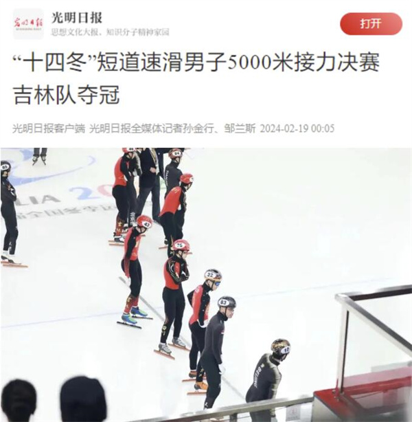 光明日报客户端推出《“十四冬”短道速滑男子5000米接力决赛吉林队夺冠》;光明网刊发《短道速滑男子5000米接力赛吉林队夺冠》。
