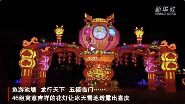 新华社客户端推出《一名英国视频博主在中国吉林欣赏灯展(British vlogger enjoys lantern show in China's Jilin)》,报道英国人亚当春节期间来到松原市观看精彩的灯会。