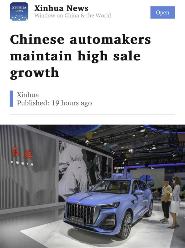 新华社客户端刊发《中国汽车制造商销售额保持高速增长(Chinese automakers maintain high sale growth)》,报道中国一汽1月销量“开门红”,1月总销量突破29.68万辆,同比增长54.2%,总销量中,仅红旗汽车品牌就贡献了4.03万辆,同比增长82.9%。