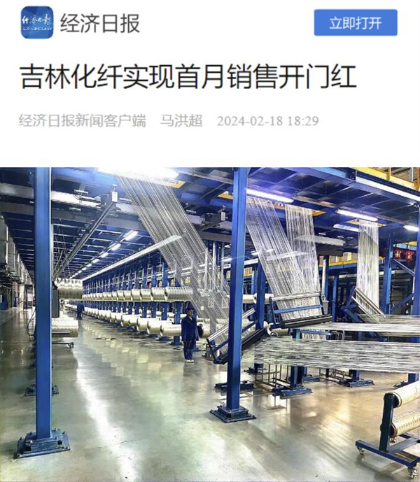 经济日报客户端推出《吉林化纤实现首月销售开门红》,报道今年1月份,吉林化纤集团实现销售收入20.1亿元,同比增长45%;纤维销量6.01万吨,同比增长68%,其中碳纤维销量同比增长3.7倍,创历史新高,实现首月开门红。