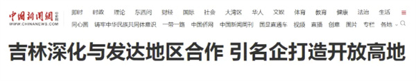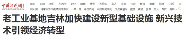 中国新闻网刊发《吉林深化与发达地区合作 引名企打造开放高地》《吉林构建优质高效医疗卫生服务体系 力争“大病不出省”》《老工业基地吉林加快建设新型基础设施 新兴技术引领经济转型》。