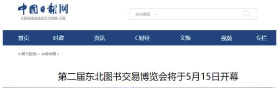 中国日报网刊发《第二届东北图书交易博览会将于5月15日开幕》。