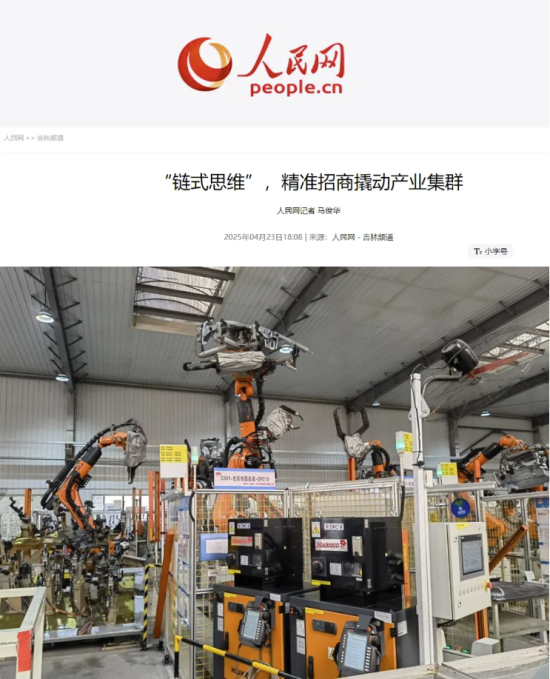 人民网刊发《“链式思维”,精准招商撬动产业集群》,报道公主岭市经开区依托一汽新能源、奥迪PPE等企业,重点招新能源配套企业;围绕长三角、珠三角和环渤海区域等意向新能源配套企业形成项目库名单,重点攻坚招商,将产业链的“强韧脉搏”转化为高质量发展动能,为长春振兴发展汇聚起强大力量。