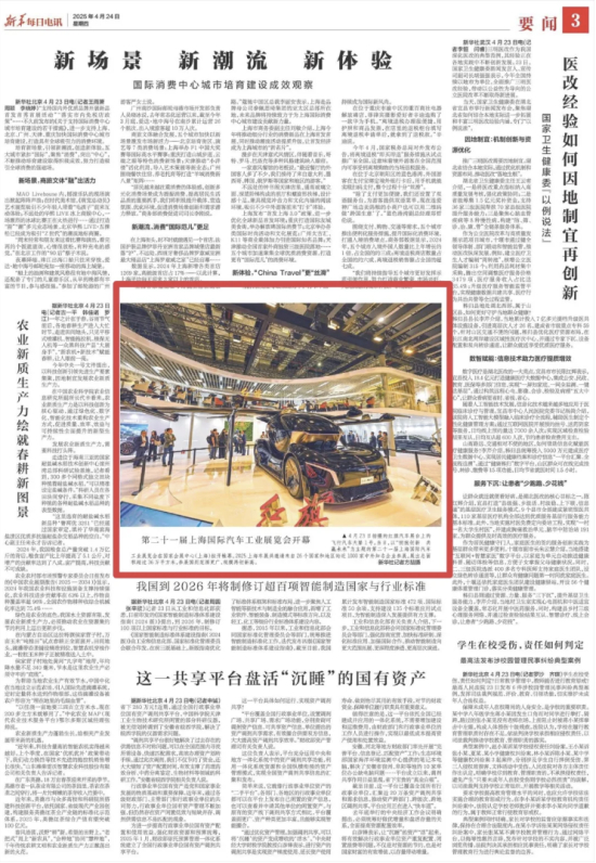 新华社客户端刊发《沃野春耕正当时》,其中报道我省将高标准农田建设作为粮食稳产增产的重要举措,引领种粮大户应用新技术,发展现代农业;刊播《一个AI指挥的“智慧大脑”》,报道低空行业大模型“紫东长空”发挥人工智能技术优势,助力低空经济;刊播《一种轻盈强韧的“材料王者”》,报道吉林化纤通过技术创新和产业升级,拓宽碳纤维的应用领域和场景;刊播《一座蓄势起飞的“天空之城”》,报道长春市以系统性创新构建低空经济发展生态;刊发《China's FAW unveils Hongqi flying car with over 200 km range(中国一汽推出续航超过200公里的红旗飞行汽车)》;刊发《More worldwide service outlets planned for iconic Chinese car brand Hongqi(中国标志性汽车品牌红旗计划在全球开设更多服务网点)》,报道中国一汽将在五年内在100多个国家和地区开设运营1000个销售和服务网点。