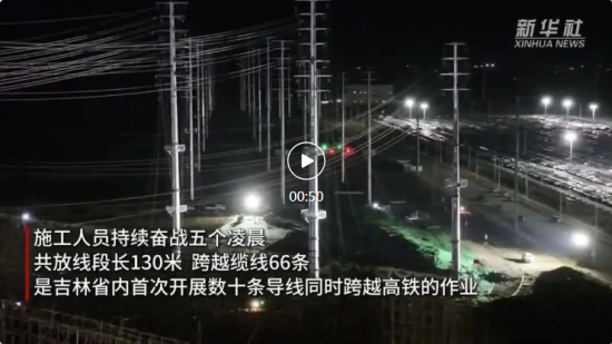 新华社客户端刊播《66条缆线顺利跨越京哈高铁》、央视新闻客户端刊播《吉速报|吉林长春 66条缆线同时跨越施工 助力现代化都市圈建设》,报道长春220千伏前程输变电工程完成跨越京哈高铁施工,标志着前程输变电工程取得关键进展。项目完成后,将有效改善省会城市电网结构,为区域协同发展注入动能。