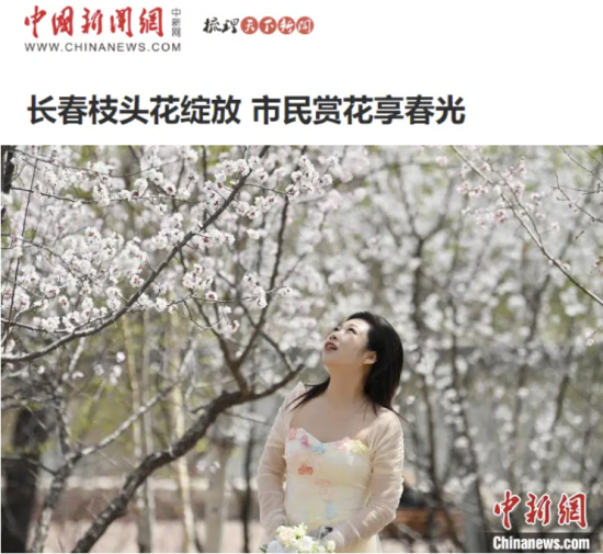 中国新闻网刊发《长春枝头花绽放 市民赏花享春光》,图集展现长春街头及公园里的春花竞相绽放,吸引市民尽享春日美景。