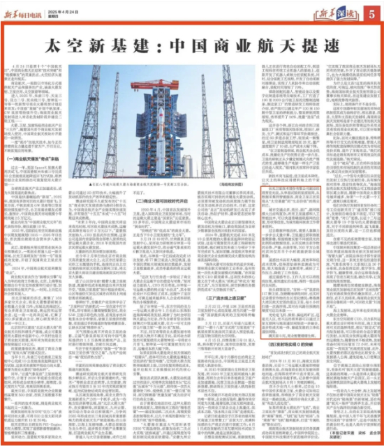 新华每日电讯刊发《太空新基建:中国商业航天提速》、新华社客户端刊发《太空新基建:中国商业航天提速|新华深读》,其中报道长光卫星研发的“吉林一号”组星成功发射,开创了我国商业卫星应用先河,正在实现从“太空基建”到“生态价值”的商业跃迁。“吉林一号”星座的117颗卫星,实时记录着农作物的生长变化情况。