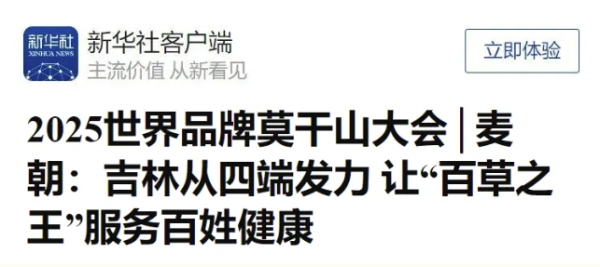 新华社客户端、央广网推出《2025世界品牌莫干山大会上的“吉林时间”》,报道在2025世界品牌莫干山大会期间,吉林省政府及企业代表对“吉林·长白山人参”“吉林梅花鹿”等品牌,通过论坛推介、专场推介活动及产品展示等形式,向全球传递吉林农业品牌建设成果与发展潜力,打造了“唱响民族品牌,擦亮‘金字招牌’”的“吉林时间”。
