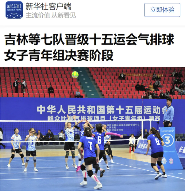 新华社客户端推出《吉林等七队晋级十五运会气排球女子青年组决赛阶段》,报道第十五届全国运动会群众比赛气排球项目(女子青年组)预赛在长春市完赛,吉林等七支球队晋级决赛阶段,获得十五运会决赛阶段入场券,将角逐该项目金牌。