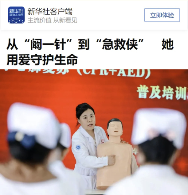 新华社客户端推出《从“阚一针”到“急救侠” 她用爱守护生命》,讲述吉林大学校医院健康教育教研室主任阚宁,从30年前初入校医院时练就了“阚一针”的名号,到如今变身“急救侠”,多年来致力于对全体师生开展急救培训、在临床一线和公益讲台间守护生命的故事。