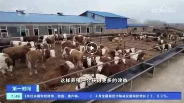 CCTV-2财经频道“第一时间”播发《吉林:一季度肉牛价格明显回升 交易量上涨》,报道作为我国优势肉牛产区的吉林省,进入四月份以来,长春、延吉等多地的肉类交易市场,伴随着肉牛价格明显回升趋势、牛肉价格出现明显上涨,交易量上涨。吉林省为应对肉牛价格的起伏,去年投入4475万元资金在全省范围内实施优质肉牛帮扶政策,推广良种、改良饲料、提升肉牛产能,节约养殖成本,让养殖企业(户)增加了养殖效益。