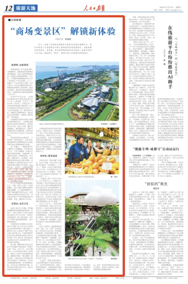 人民日报海外版推出《“商场变景区” 解锁新体验》,其中报道在长春“这有山”文商旅综合体,将山门、山坡、山洞等“搬”进商场,让游客在山道间进入商业空间,今年“五一”假期累计接待游客近20万人次,同比增长15.63%,让复合型购物场所发展为独立的购物旅游目的地。