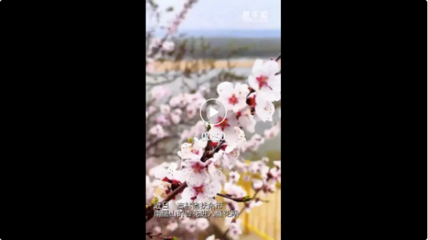 新华社客户端推出《千城胜景|吉林扶余:赴一场杏花之约》,报道扶余市南鹰山的杏花进入盛花期,近千亩杏花与江水相映,呈现一幅动人美景。