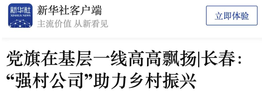 新华社客户端推出《党旗在基层一线高高飘扬|长春:“强村公司”助力乡村振兴》、新华财经客户端推出《长春:“强村公司”助力乡村振兴》,报道长春市围绕抓党建促乡村振兴,探索各地村域项目联建、镇域产业联营等“强村公司”发展模式,各地通过“强村公司”入股合作、劳务用工、订单生产等形式,将资源集中起来实现集体、群众“双增收”。
