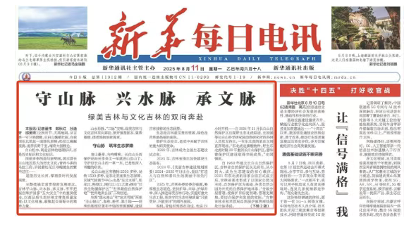 新华每日电讯一版头题推出《守山脉 兴水脉 承文脉 绿美吉林与文化吉林的双向奔赴》,报道吉林完整准确全面贯彻新发展理念,守山脉、兴水脉、承文脉,牢牢把握在维护国家“五大安全”中的重要使命,以高品质生态环境支撑高质量发展;以文化铸魂,凝聚起全面振兴的精神力量。山水形胜,“三脉”交响,绿美吉林与文化吉林双向奔赴,掀开强基固本、聚势蓄能、提质焕新的新篇章。