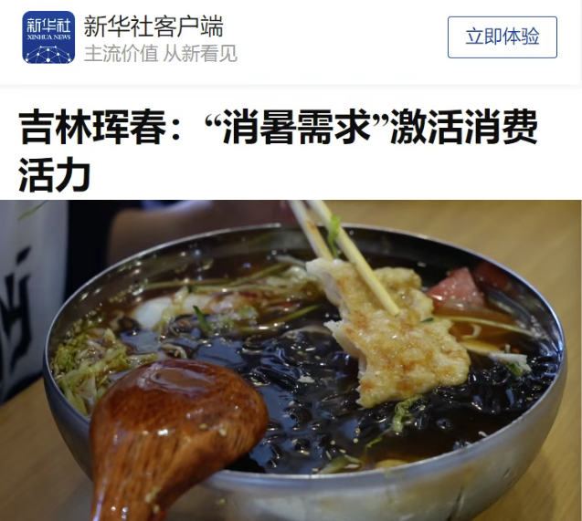 新华社客户端推出《吉林珲春:“消暑需求”激活消费活力》,报道在珲春市,从餐饮到家电,各类消暑产品销量激增,冷面、空调等夏日“刚需”商品持续走俏,为消费市场注入强劲动能。