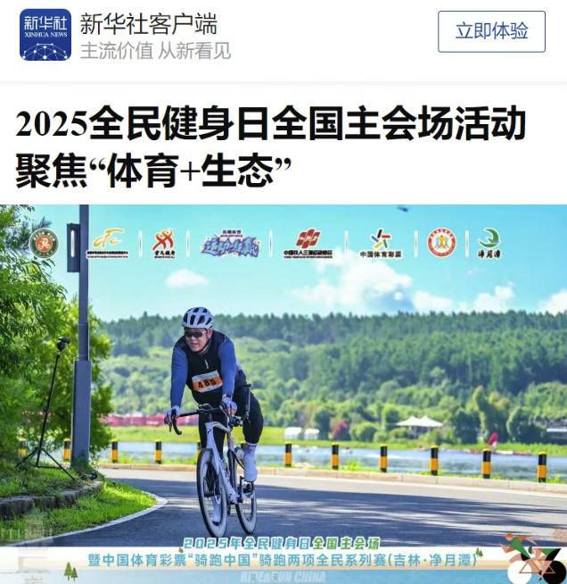 新华社客户端推出《2025全民健身日全国主会场活动聚焦“体育+生态”》、央视新闻客户端推出《吉速报丨2025年全民健身日全国主会场暨“骑跑中国”骑跑两项全民系列赛在长春开赛》,报道2025年全民健身日全国主会场暨中国体育彩票“骑跑中国”骑跑两项全民系列赛(吉林·净月潭站)举行,来自全国各地的1700余名参赛选手齐聚长春净月潭国家森林公园,在“会呼吸”的生态赛道上争先骑行奔跑,感受“体育+生态”的有机结合。