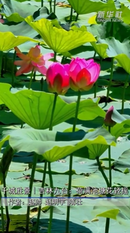 新华社客户端推出《千城胜景|吉林九台:荷满池塘花轻摇》,报道长春市九台区进入盛花期的荷花竞相绽放的情景。