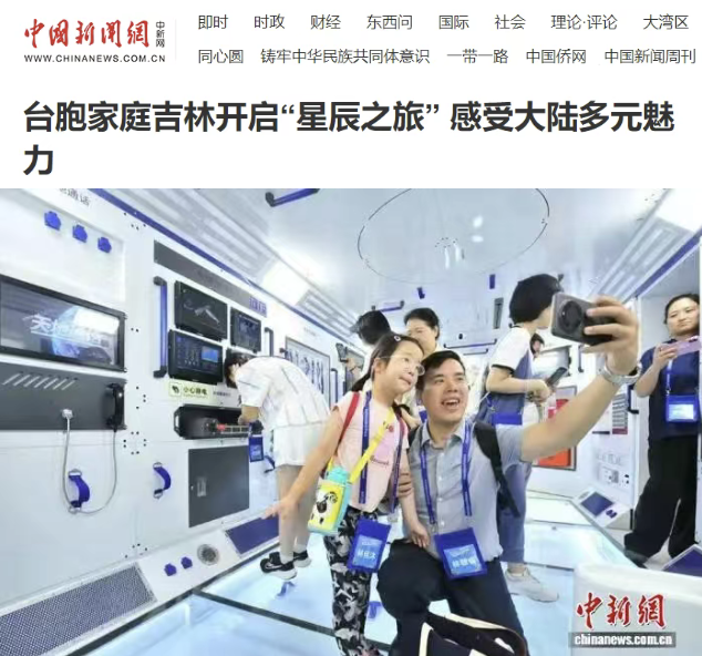 中国新闻网推出《台胞家庭吉林开启“星辰之旅” 感受大陆多元魅力》,报道2025年吉林省台 联第五届两岸婚姻家庭亲子夏令营开营,20余个台胞家庭走进筑梦星辰(长春)航天科教文旅馆,了解宇宙知识,体验神秘的太空科技。