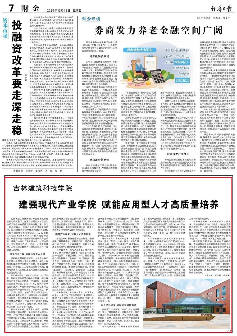 经济日报推出《吉林建筑科技学院 建强现代产业学院 赋能应用型人才高质量培养》,报道吉林建筑科技学院联合华为技术有限公司共建现代产业学院,构建出“目标精准化、过程协同化、评价标准化”的“三化”人才培养模式,为东北地区数字产业转型升级注入了强劲的人才动能。